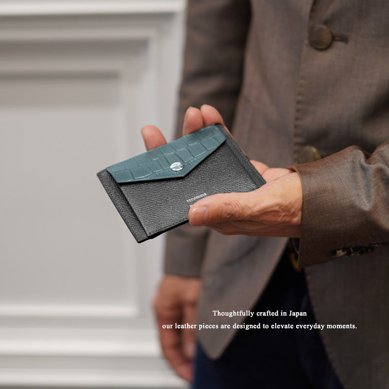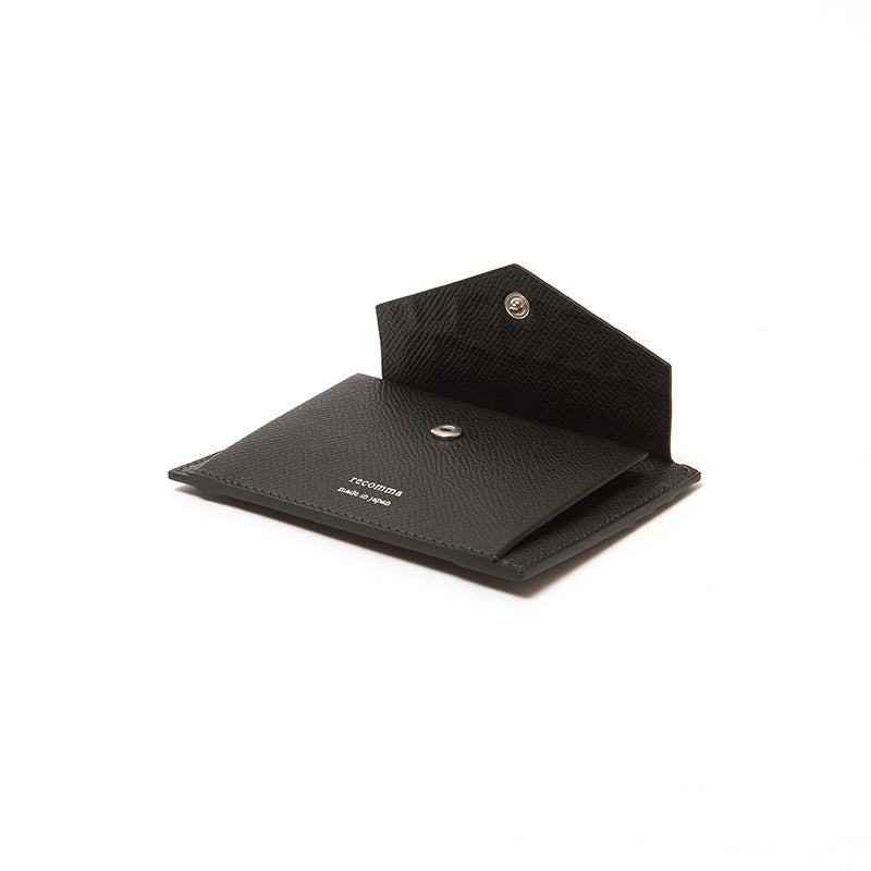 薄型ながら、カード4枚・紙幣・小銭が無理なく収まるミニマルな財布。